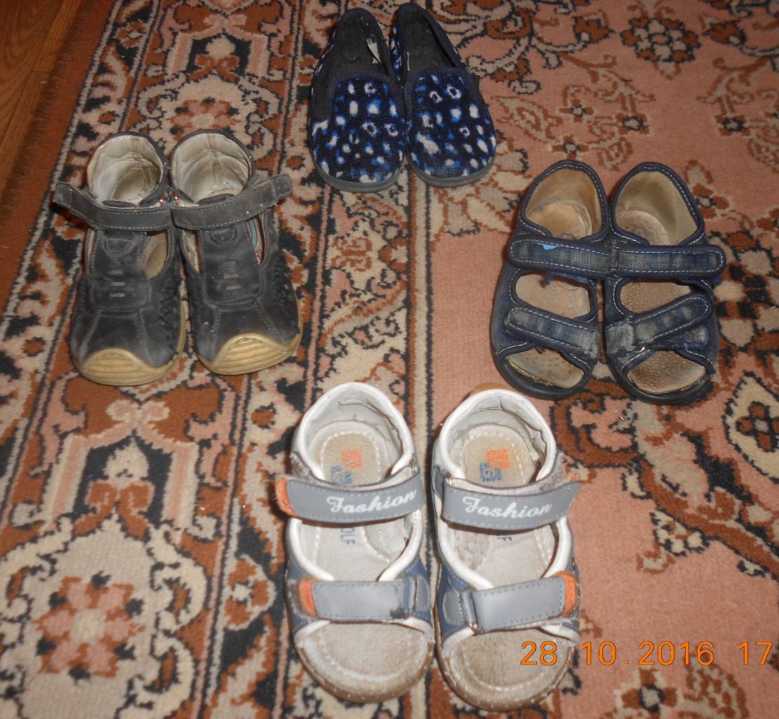 Обувь размер 21-22. Сандали закрытый носок- 13,5см, тапочки 13,8см, сандалики синии под джинс 14см, сандали с оранжевой вставкой вся стелька 14,2 см. Все вместе на 1,5 кг гречки. Район пос. Котовского, центр города.