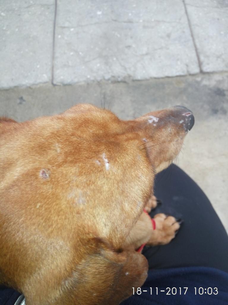 На Зайке начали заживать все ее раны, и очень стали видны шрамы. Завтра искупаем ее.