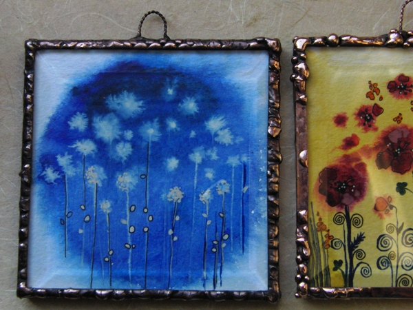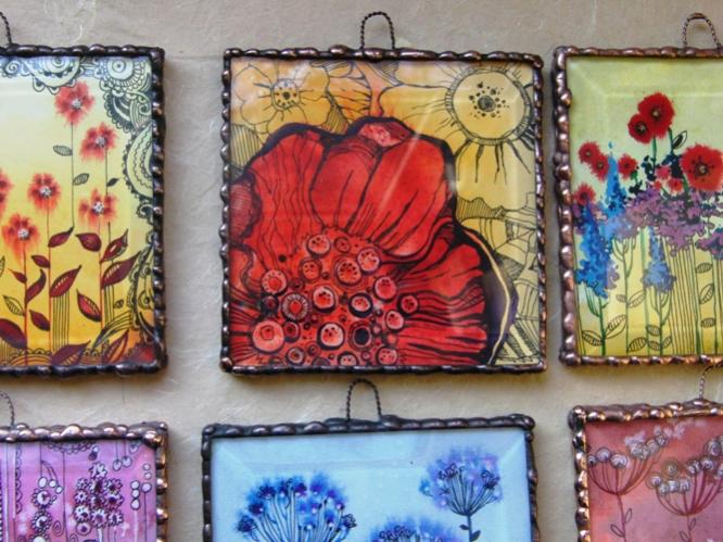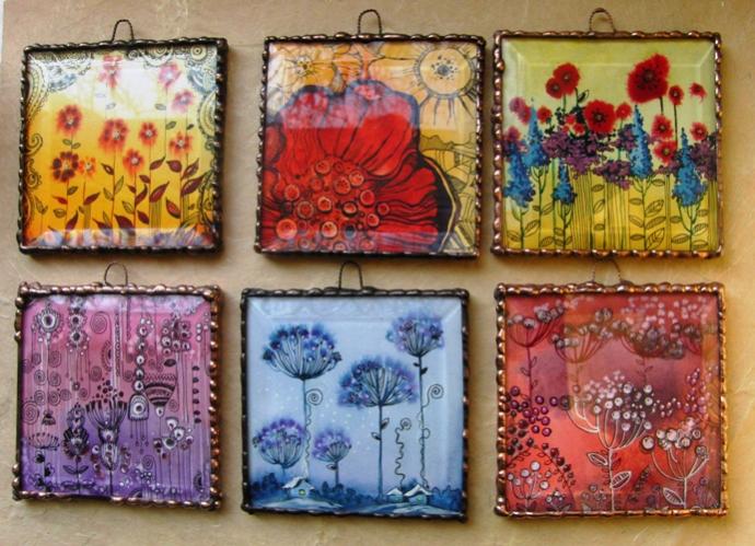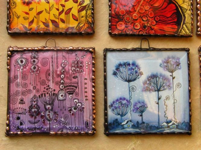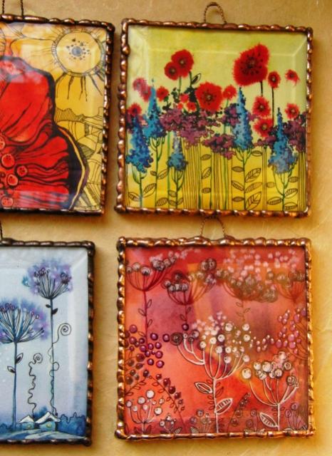 Размер каждой работы примерно 10см, как всегда выполнена вручную, из качественного витражного стекла. Цены от 100 до 200 грн. Возможен повтор на заказ, но все равно работы будут немного отличаться, т.к каждый кусочек стекла имеет неповторимую фактуру и оттенок. Поэтому можно вместе придумать на месте, на основе уже готовых работ именно то что хочется Вам)