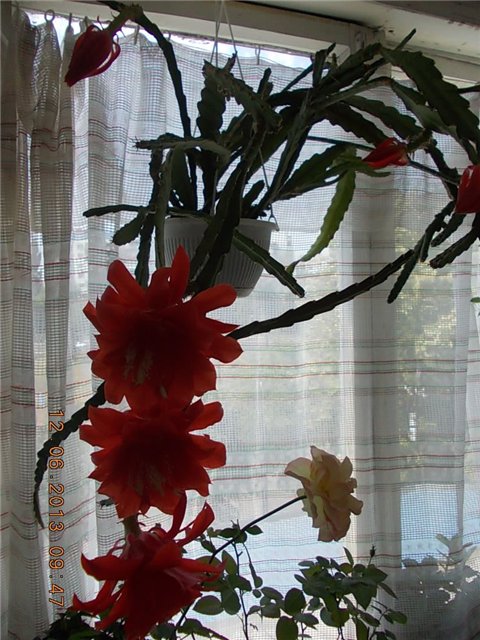 У всех очень шикарные цветочкиУ меня всего один куст розовый, но он у меня второй год и еще ни разу не цвел. Прошлой весной было что-то похожее на бутоны, но сбросил все. А шлюмбергеры цвели.