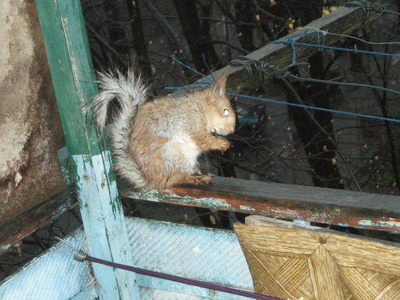 Знакомой белка залезла в форточку- на кухню - было очень весело потом убирать последствия![]()