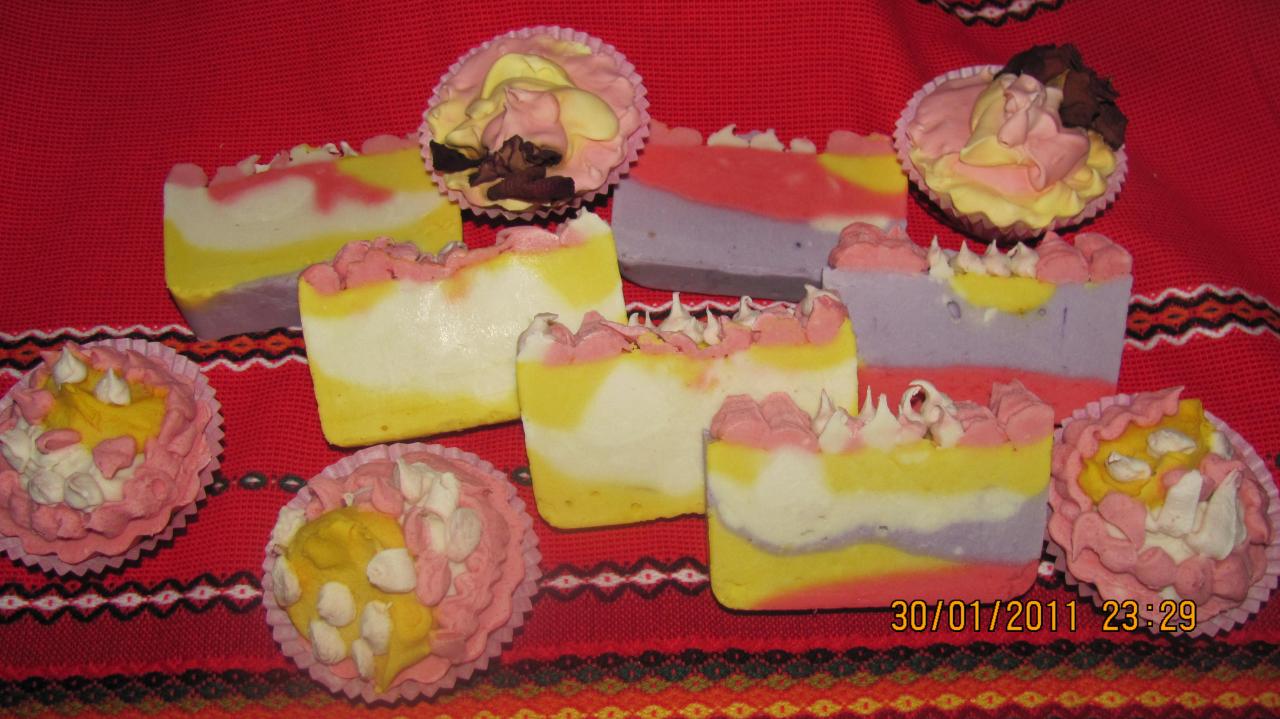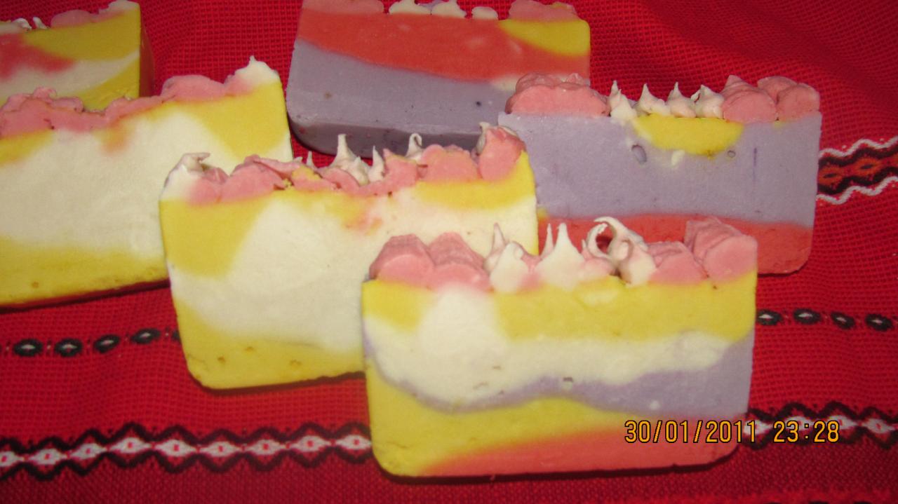 Мыло имеет пористую структуру и запах тутти-фрутти. Благодаря свое пористой структуре, если его уронить в воду оно не утонет, это очень нравится детям.