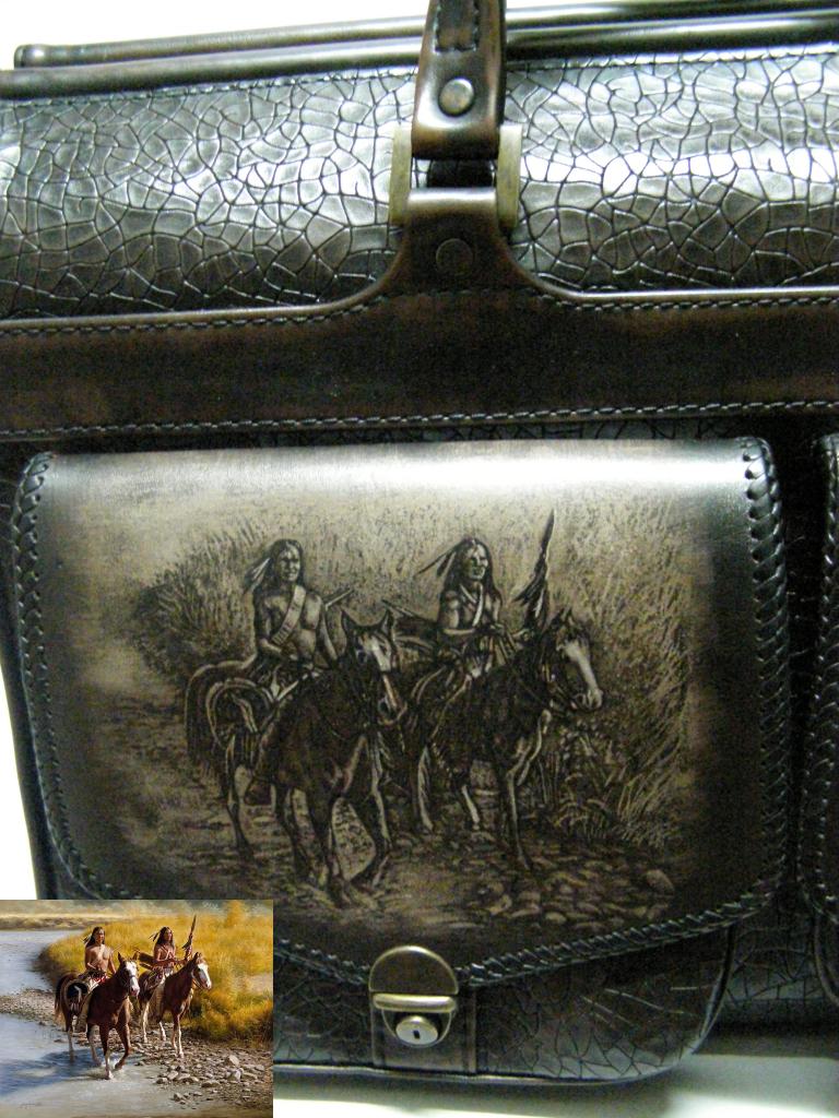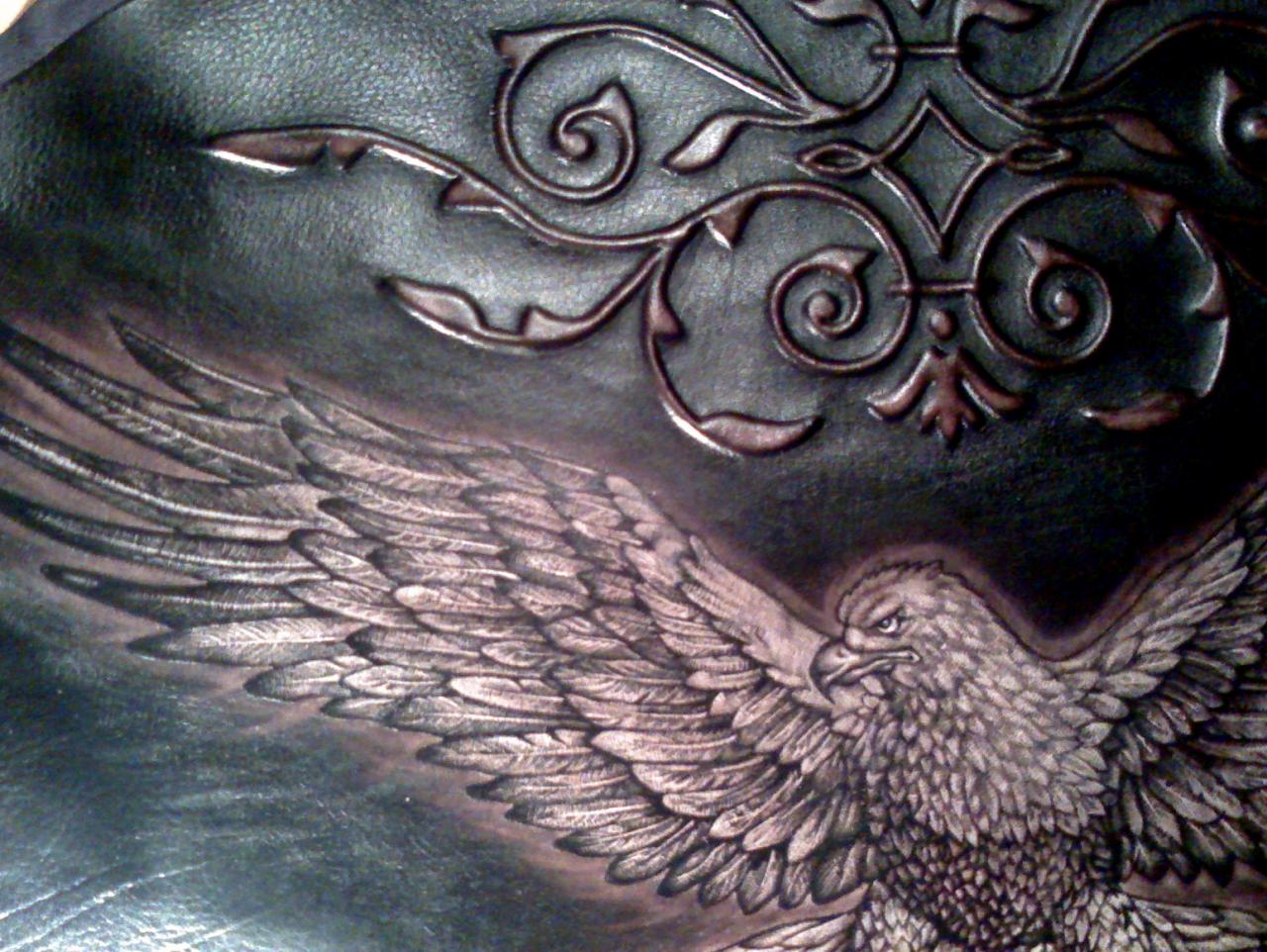 1)ручная гравировка кожи ножами( с адаптацией от внешних воздействий-особая пропитка)