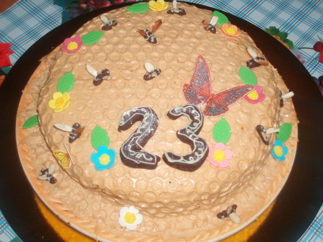 Наваяла и я с малявкой для мужчинок моих тортик " Медовик" источник. Вкус ещё не пробовала, но очень понравилось время приготовления, пол часа ушло на выпечку коржей. 10 мин на крем и 10 минут на оформление. Супер!! Правда пчёлы мои больше похожи на неведомых зверюшек, но возможности стараться не было, сынуля конечно очень помогал, очень искусно пчёл закладывал в ротик))))