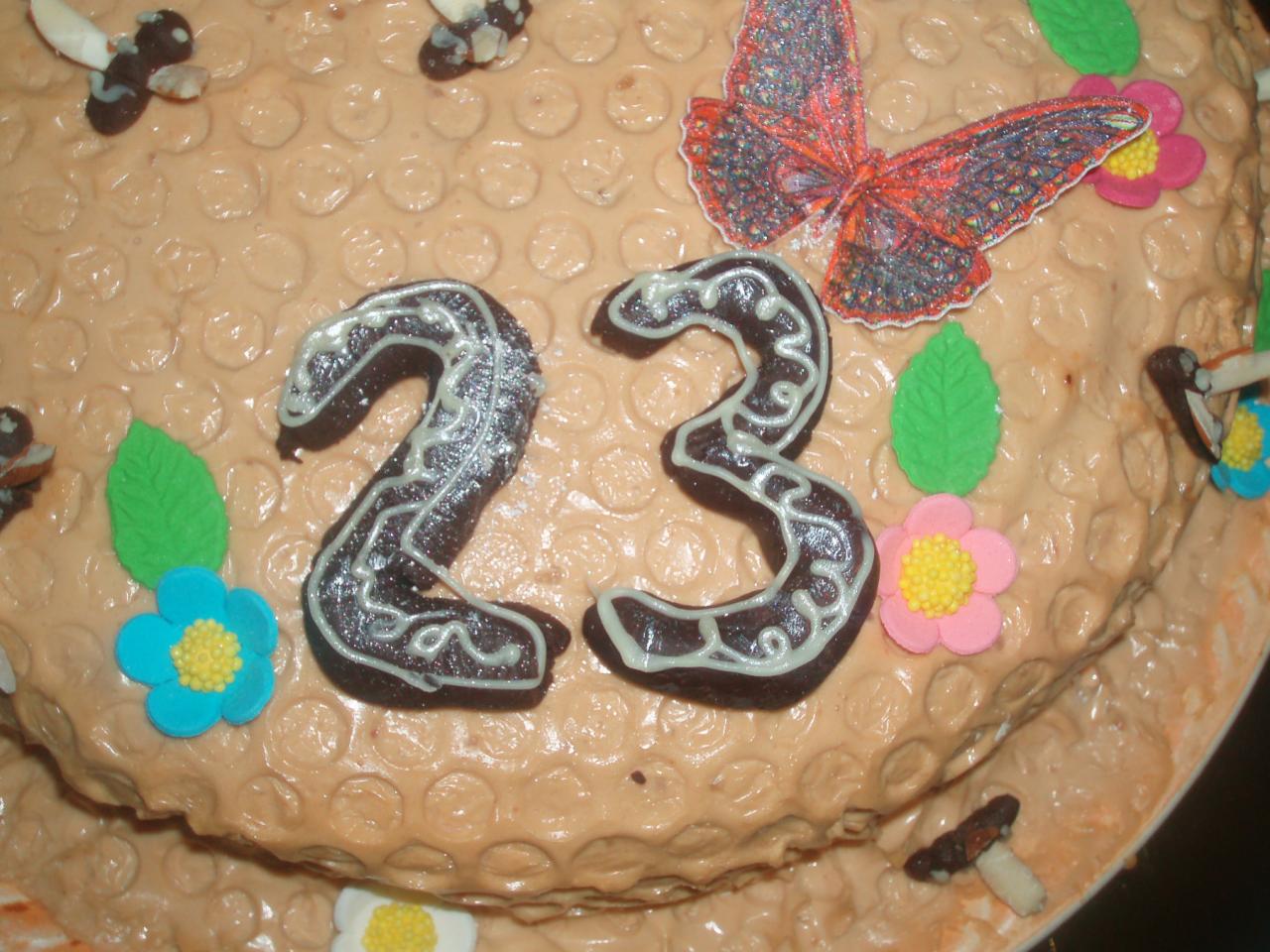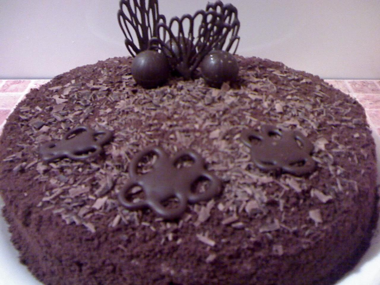 Я тоже мужчинам тортик испекла. Опять же Нежнейшая шоколодная основа для тортов+вишня+крем из сметаны с сахаром. Пыталась сделать шоколадные украшения - шоколада наелась надолго вперед!