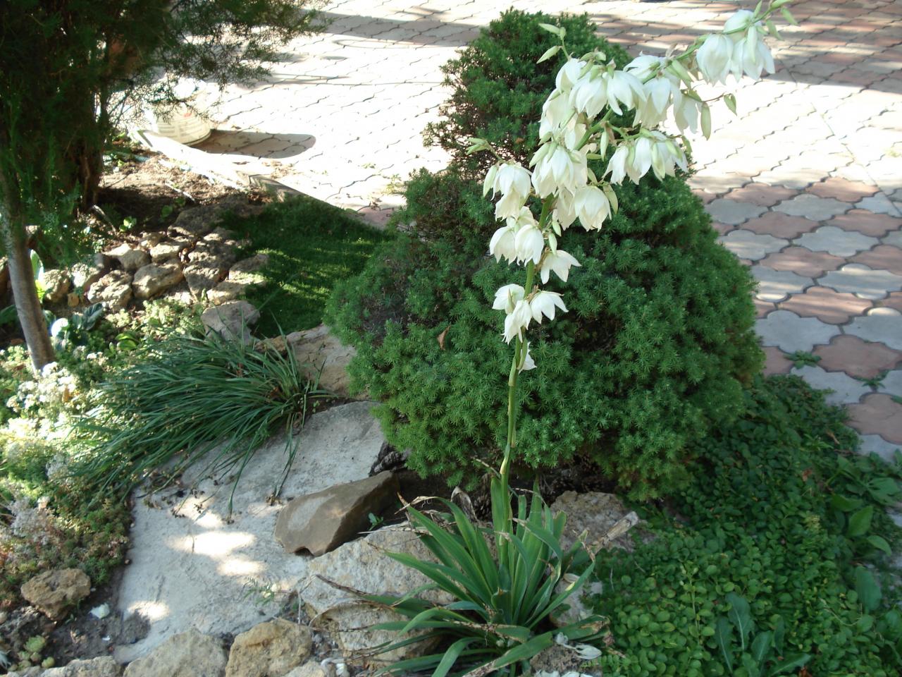 Расцвели платикодоны, после дождей опять зацвели колокольчики "жених и невеста", отцвели лилии, цветут лилейники и отцвела юкка.