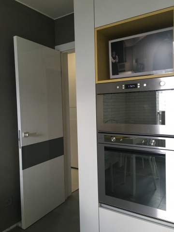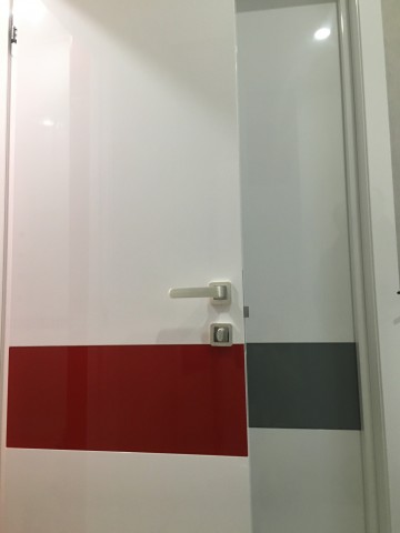 Ну вот такие))) Фишка в цветах, на каждой двери снаружи, с коридора, вставка лакобелевая серая, снутри, с комнат, кухни.. .. вставка другого цвета, выбирали по ралу.
