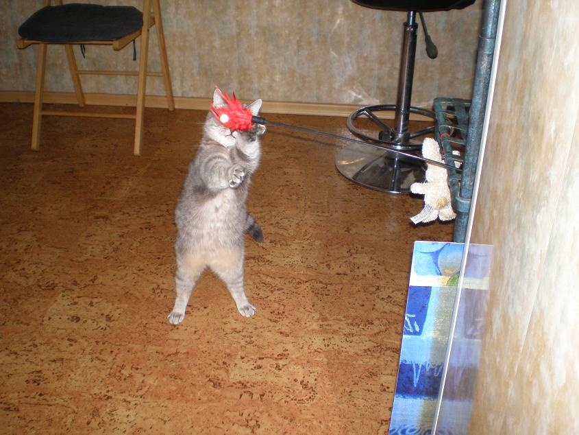 Вредитель какой! Залазит на ёлку и сбрасывает игрушки. Снимаешь его - шипит, тявкает и обратно лезет.