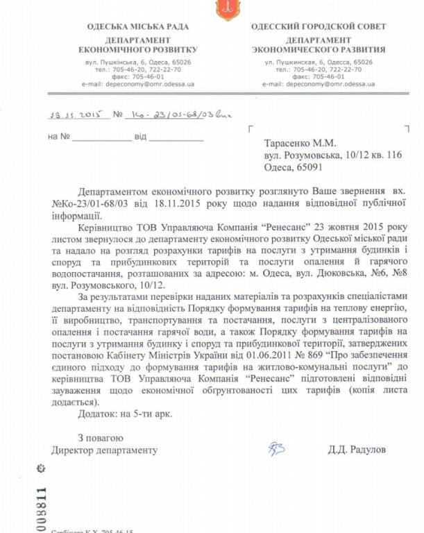 Спасибо за эту информацию. Теперь есть основания не платить СДПТ, пока этот вопрос не будет улажен с департаментом. Буду платить за воду и вывоз мусора, это те услуги, что я реально получаю. Плачу через Приват24. Все квитанции есть. Очень сомневаюсь, что Ренессанс будет судиться с жильцами за неоплату по неутвержденным тарифам при отсутствии всякой отчетности.