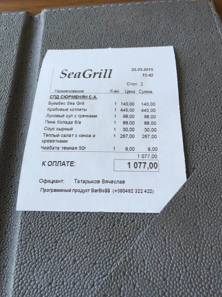 посетили сегодня впервые SeaGrill на 12-й Фонтана. Обслуживание понравилось (единственное, нас предупредили, что на верхней терассе прохладно, но предложили пледы, в долгом ожидании которых мы задубели. Когда уже я вернулась из машины с курткой, то увидела, что их, наконец, принесли. А в остальном--без нареканий).