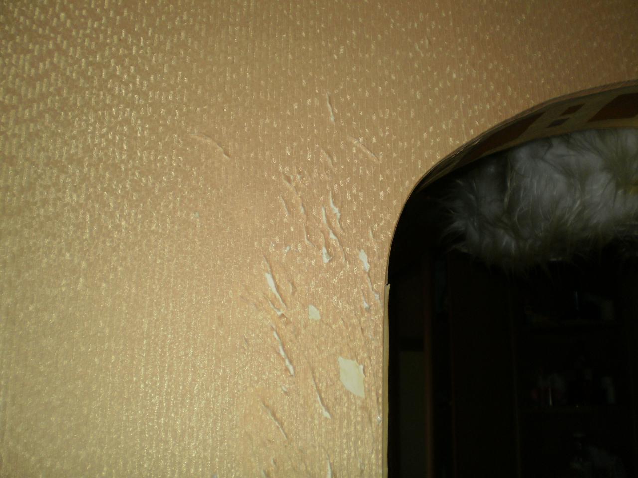 Ну.... у вас хоть пониже, а вот наша кошка забралась на высокую коробку стоявшую под свежепоклеенной мягкими обоями стеной и потянувшись обработала их аккурат по середине, т.е. по центру стены.....Теперь хоть бери да ковёр вешай.... Вот только в комнате это была единственная стена с обоями, так сказать "выделенная".