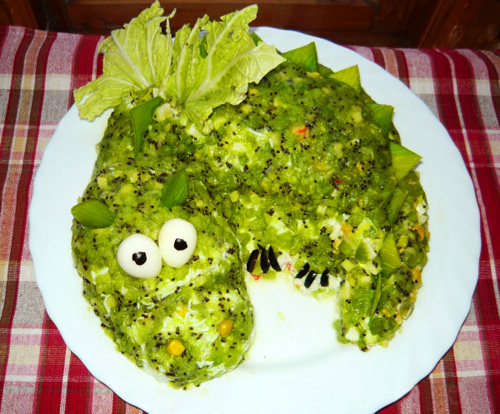 Салат, оформленный в виде фигуры дракона.