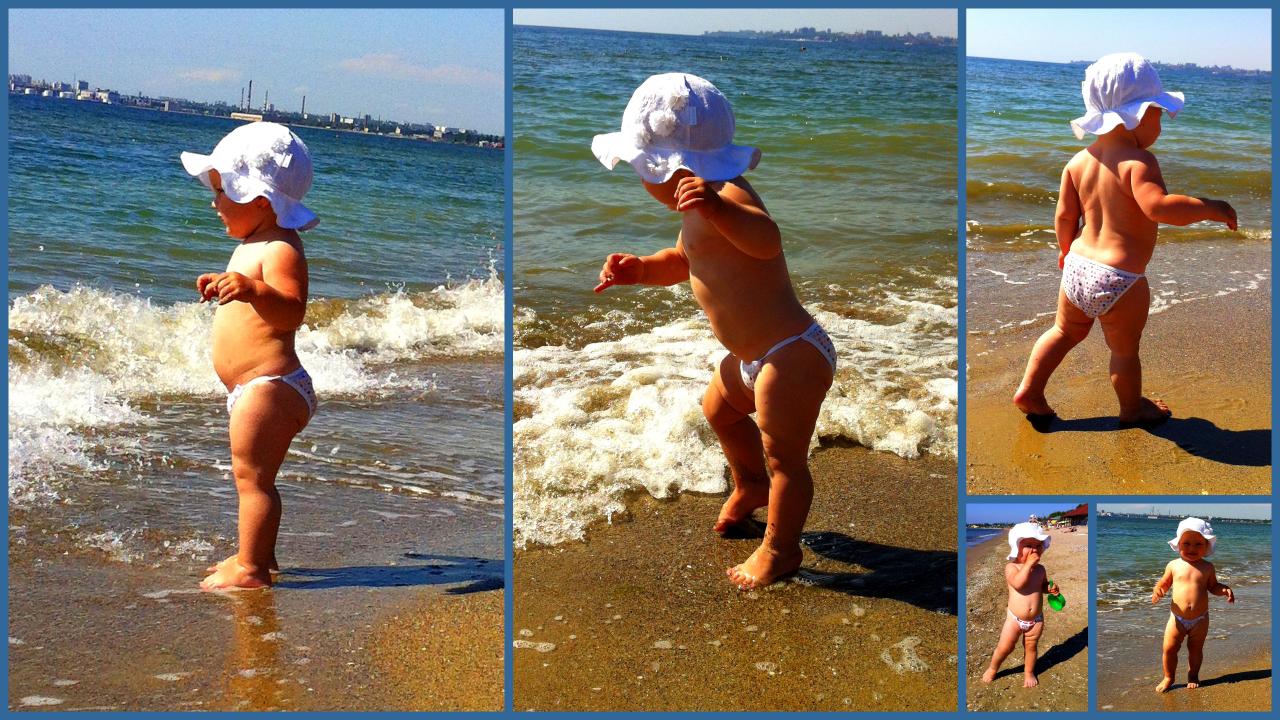 Наш увы, боится и моря, и песочка. В лучшем случае, стоит на бережку, где песок твердый и мокает пальцы в набегающую волну