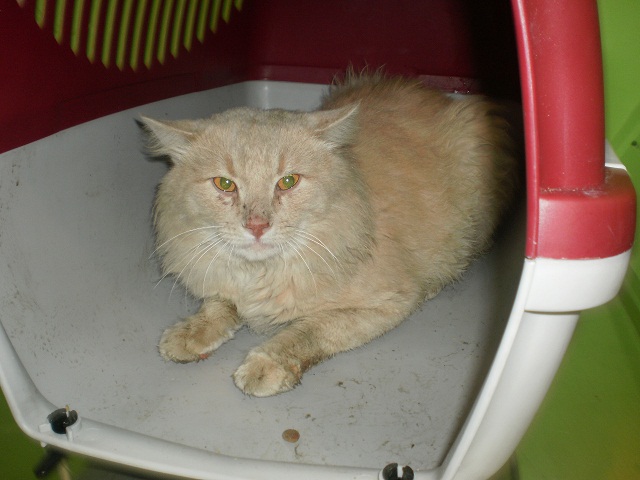 А вот и наш Карлсон, перепуганный до ужаса и несчастный. Сначала сидел в клинике тихонько, даже дал себя врачу погладить, потом освоился и стал защищаться. Решили не травмировать кота до завтра. Завтра отмоют, отчистят детально осмотрят. Из первичного осмотра ясно-кот молодой около 2-3 лет, не кастрированный (пока), с неплохим состоянием здоровья.