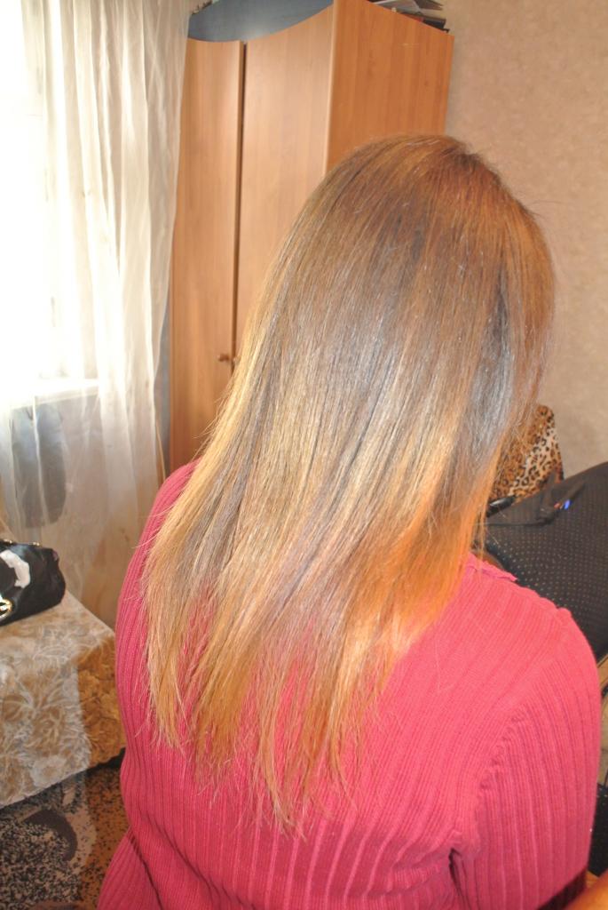 после - гладкие, прямые, блестящие волосы