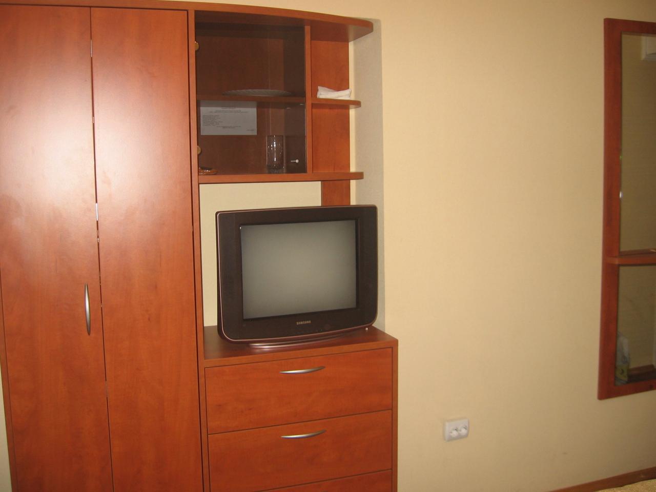 Номер у нас был повышенной комфортности,в принципе я осталась довольная: туалет и ванная совместная ,двухспальная кровать и одно приставное место, телевизор, кондиционер,холодильник, посуда( тарелки .стаканы) достаточно шкафов и комод( есть куда вещи разместить.Всё очень чисто,полотенца белоснежные, постель чистенькая, убирали постоянно, мусор в корзине не залёживался.
