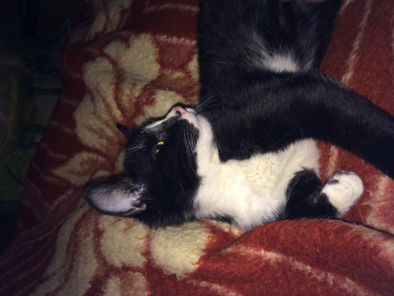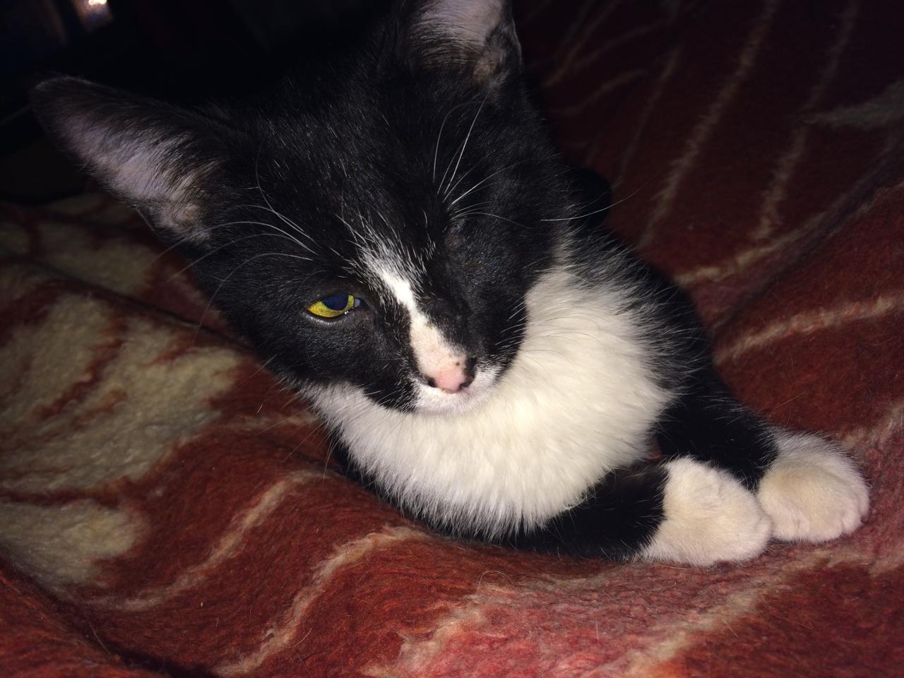 Не первый раз замечаю, что на черно-белых котиках удаленный глаз смотрится даже пикантно, как прищур или игривое подмигивание, шрамчика практически не видно, желаю Бобу поскорее найти добрые ручки, он замечательный малыш)))