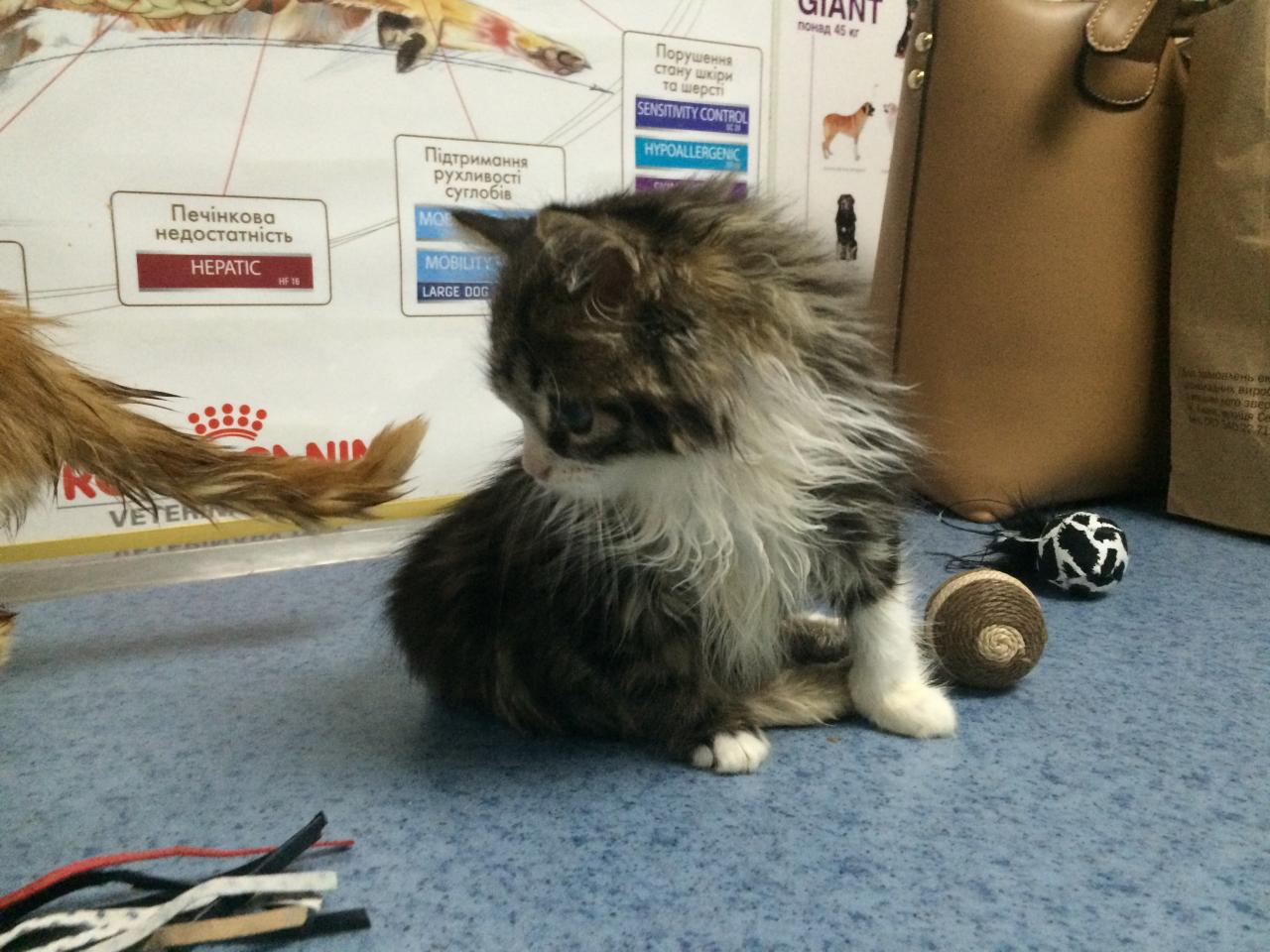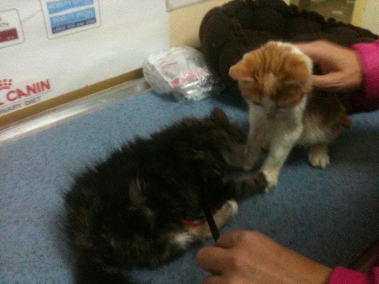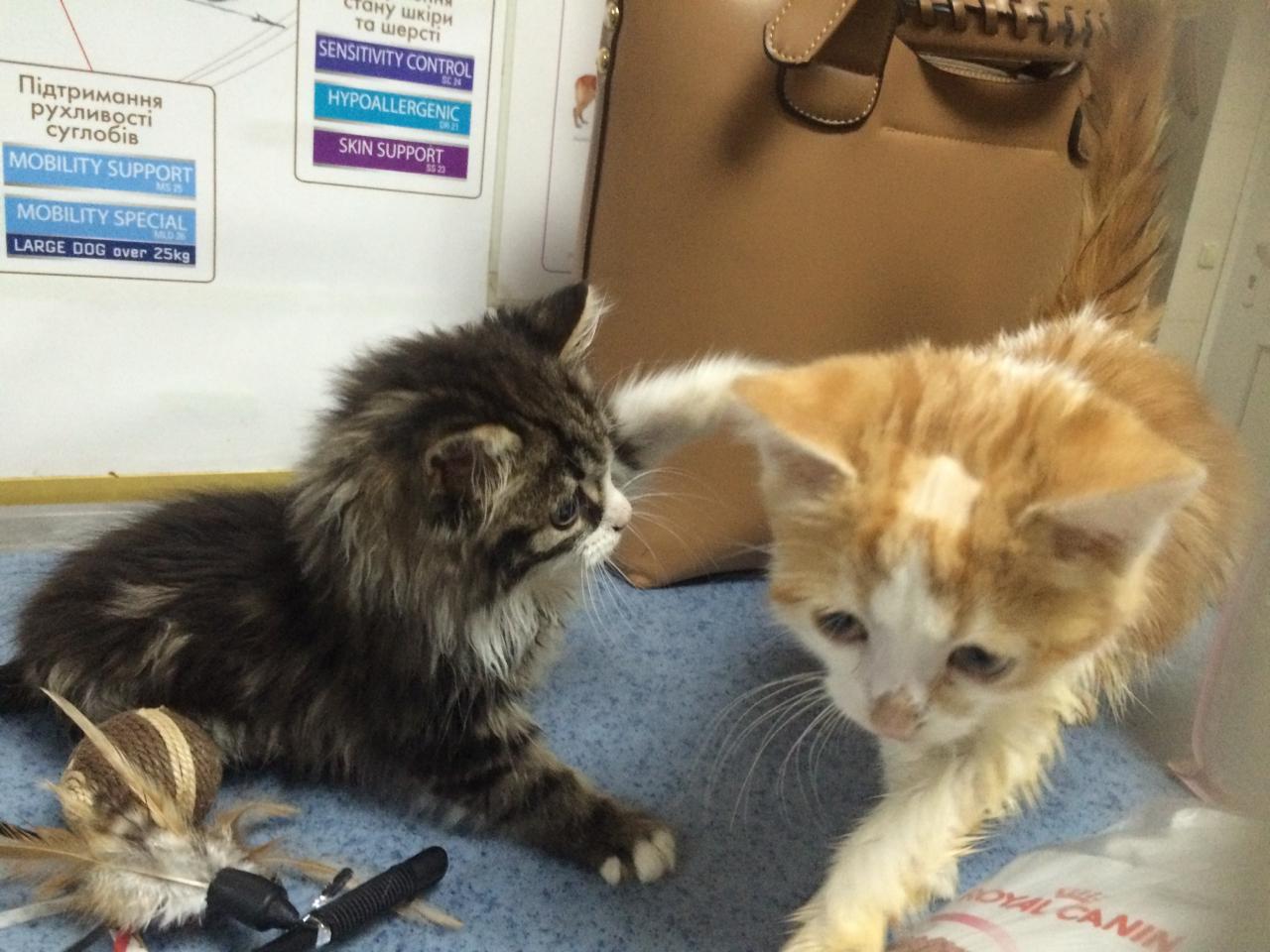 Но все по порядку - когда я пришла, врач Кирилл Игоревич достал из клеточки Клычка и начал мне рассказывать о его самочувствии, ну а сам Клычок без дела не сидел - начал активно нападать на "метелку") а в это время Огонек начал тааак мяукать, вообшем всем своим видом показывал, что ему тоже требуется вниманиеВообщем мы достали Огонька, и он успокоился, начал все изучать, и играть с мячиком. Врач сказал, что к нему возвращается зрение, и , как я поняла, полное восстановление - это вопрос времени. Внутри мячиков что-то звенит, и Огонек успешно играл с ними, да и с метелкой тоже отлично бегал -не смело, но бегал, - так что я уверена, что малыш очень скоро будет видеть все-все) он просто Чудо! Такой нежный, такой добрый, прижимался ко мне и мурчал)
