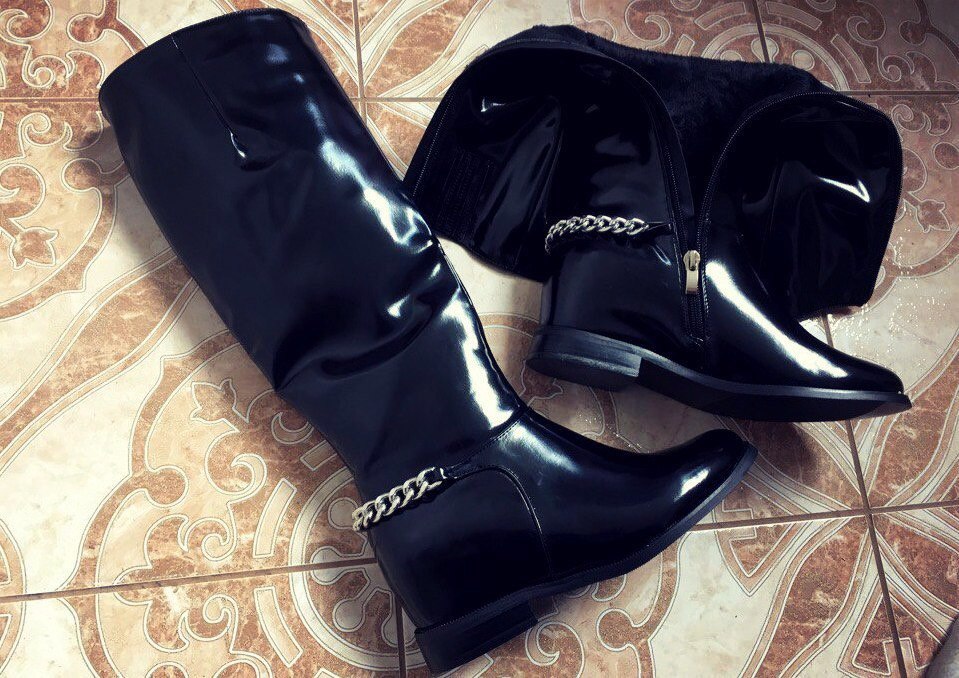 2.сапоги иск.лак, внутри тонкий мех по всей высоте сапога