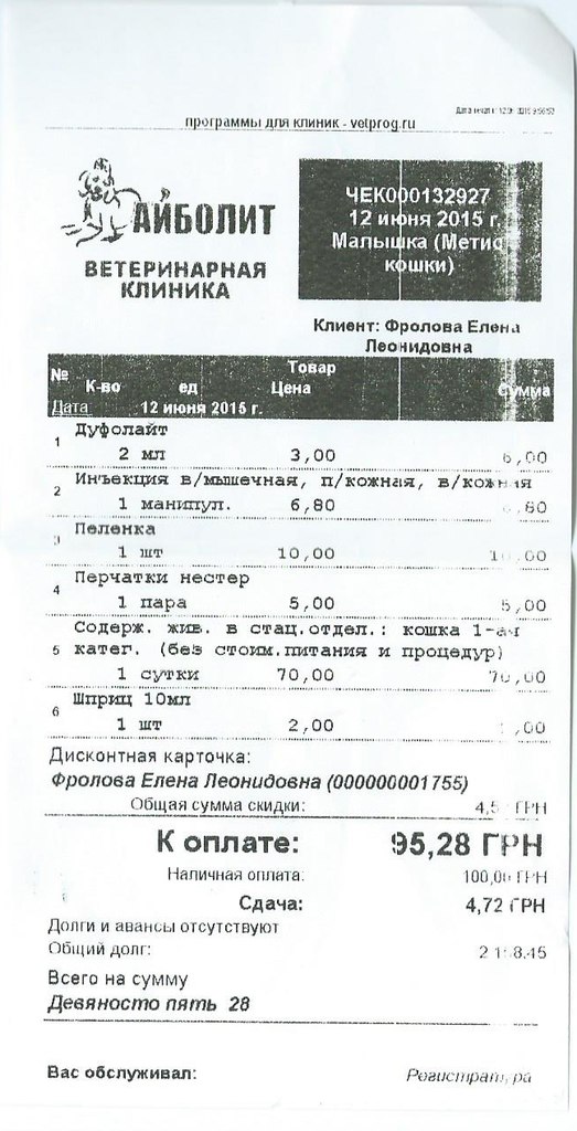 За удаление одного глаза заплатили 100 грн. Чека нет