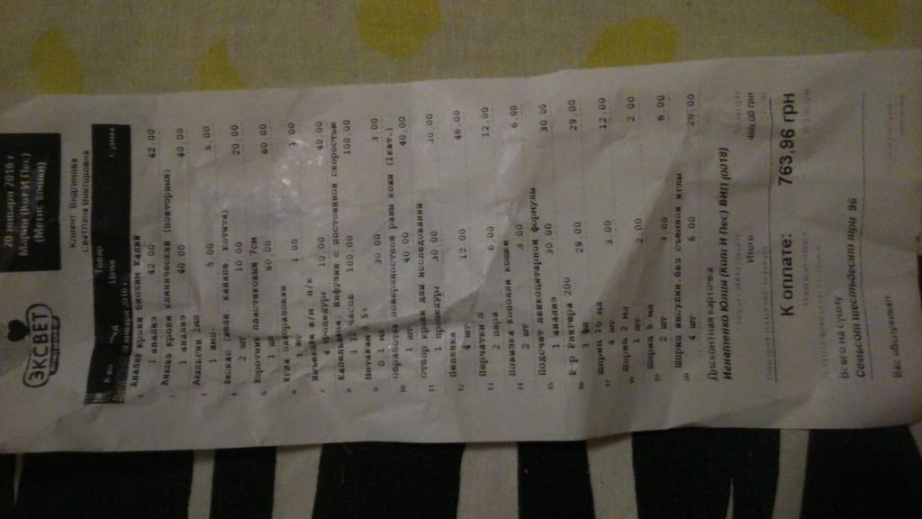 Когда я была в клинике, мне дали чек с последним долгом на вчера: