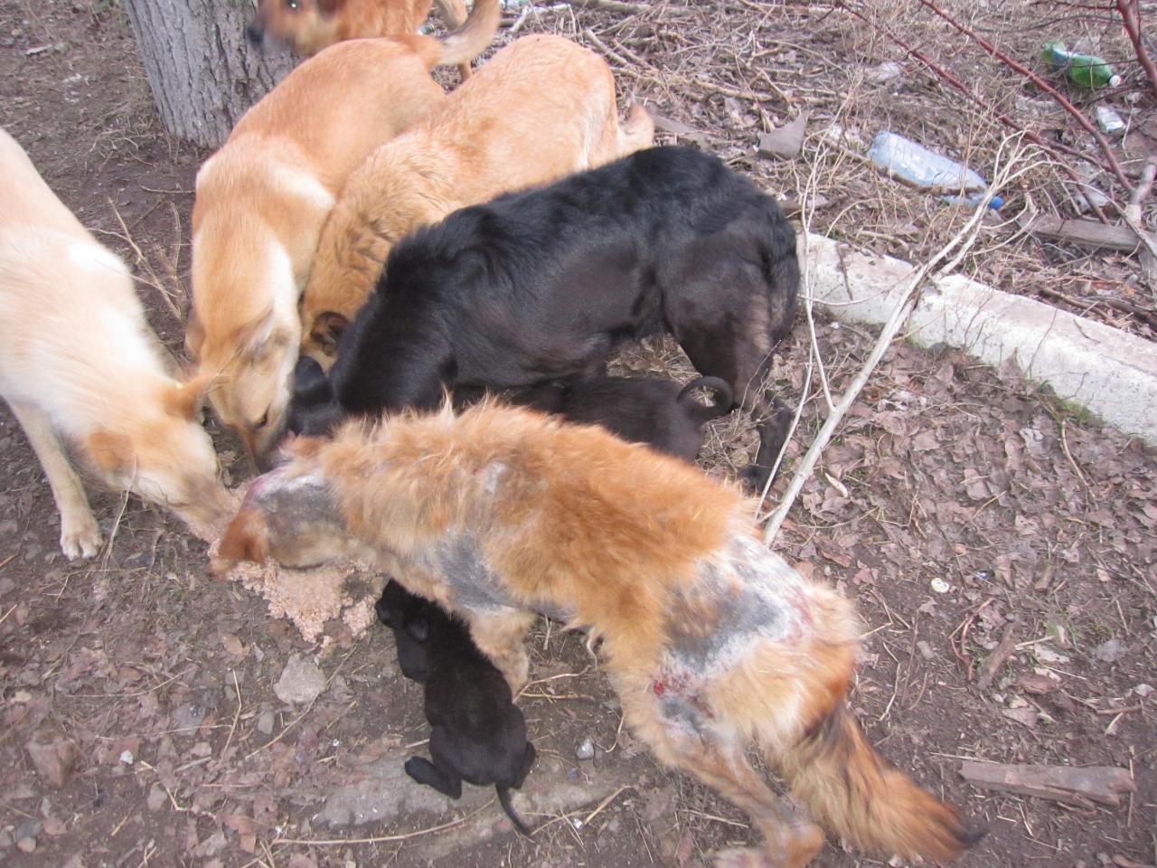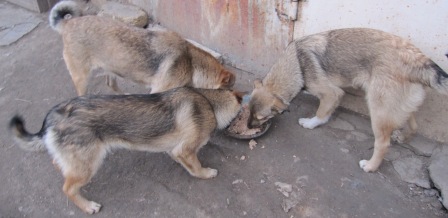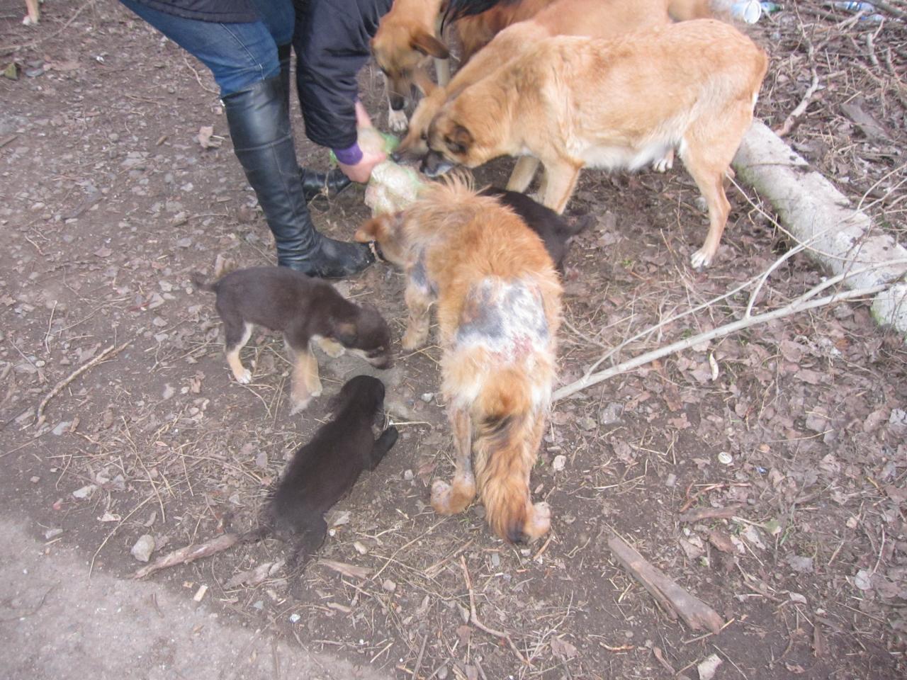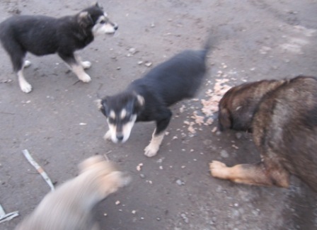 Очередная стая под название "Беда", здесь есть больной очень собик и было шестеро щенков - под годовым названием "горох" - из-за размера, одного уже задавила машина, двое просто умерли от недоедания