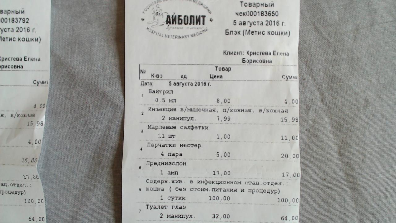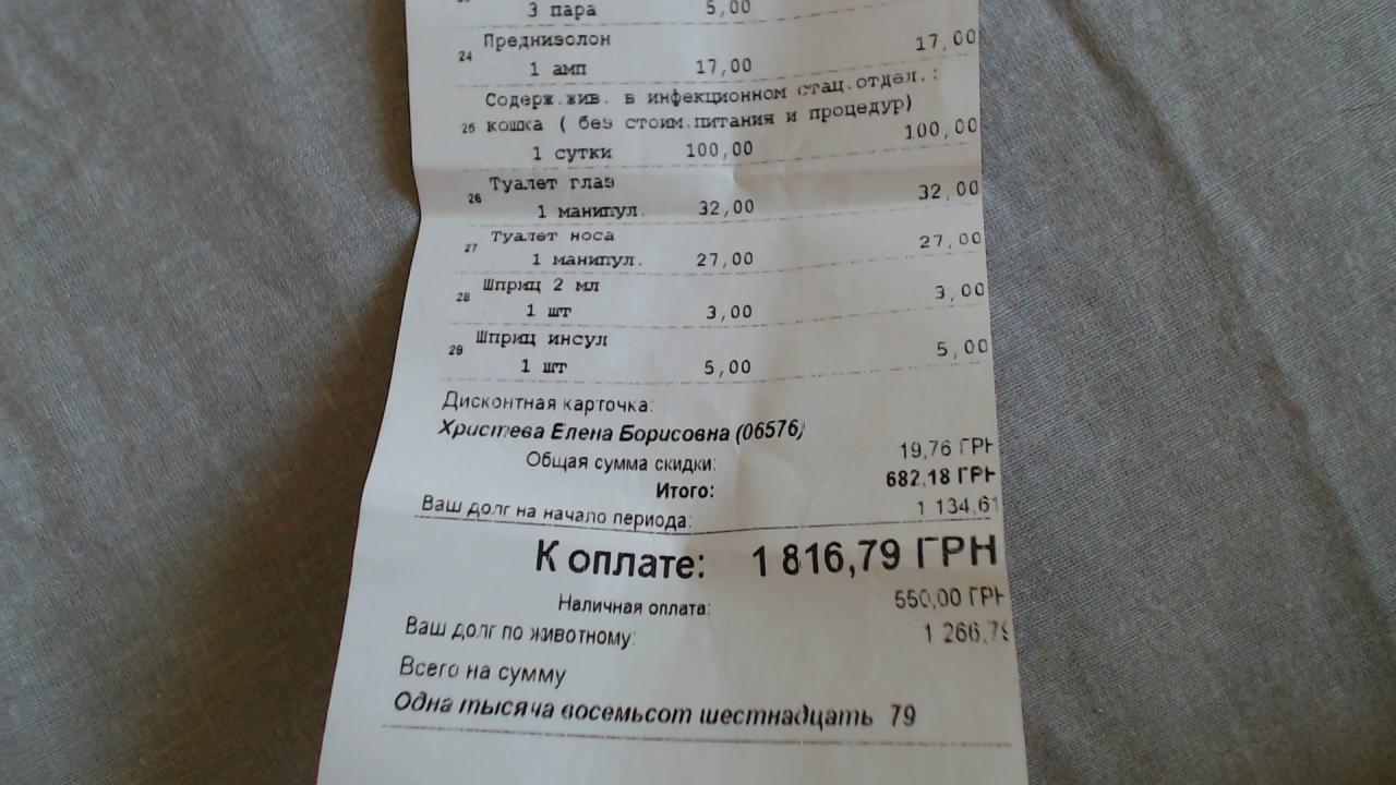 19.07: 100 грн оплата за стационар в Айболите http://forumodua.com/showthread.php?t=2895636&page=2