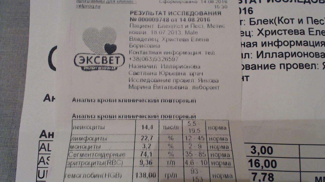 19.07: 251 грн прием в клинике Эксвет, обработка от паразитов. http://forumodua.com/showthread.php?t=2895636&page=2