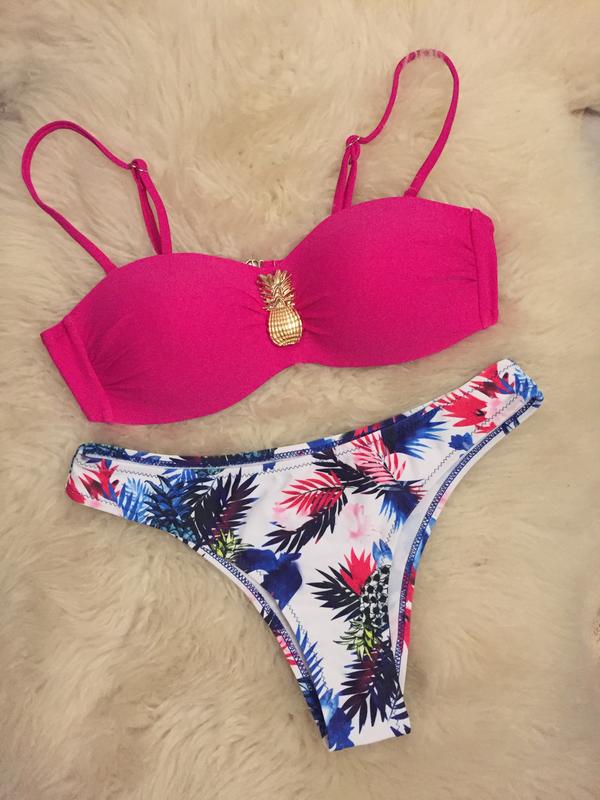 Очень красивый малиновый купальник с брошкой ананас {съемная}