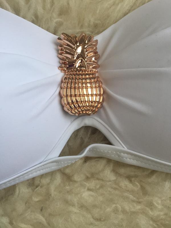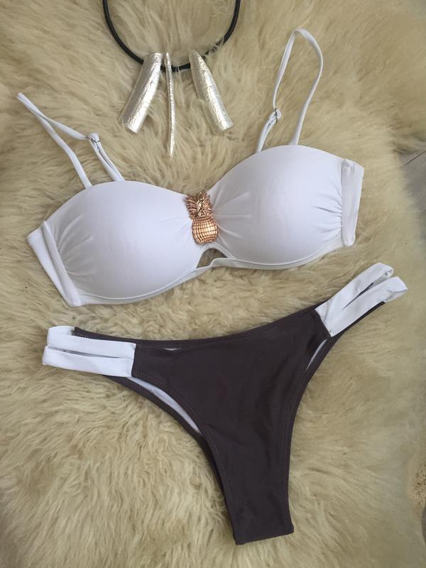 Белый с кофейными плавками купальник с брошкой ананас {съемная}