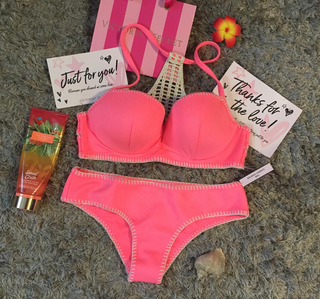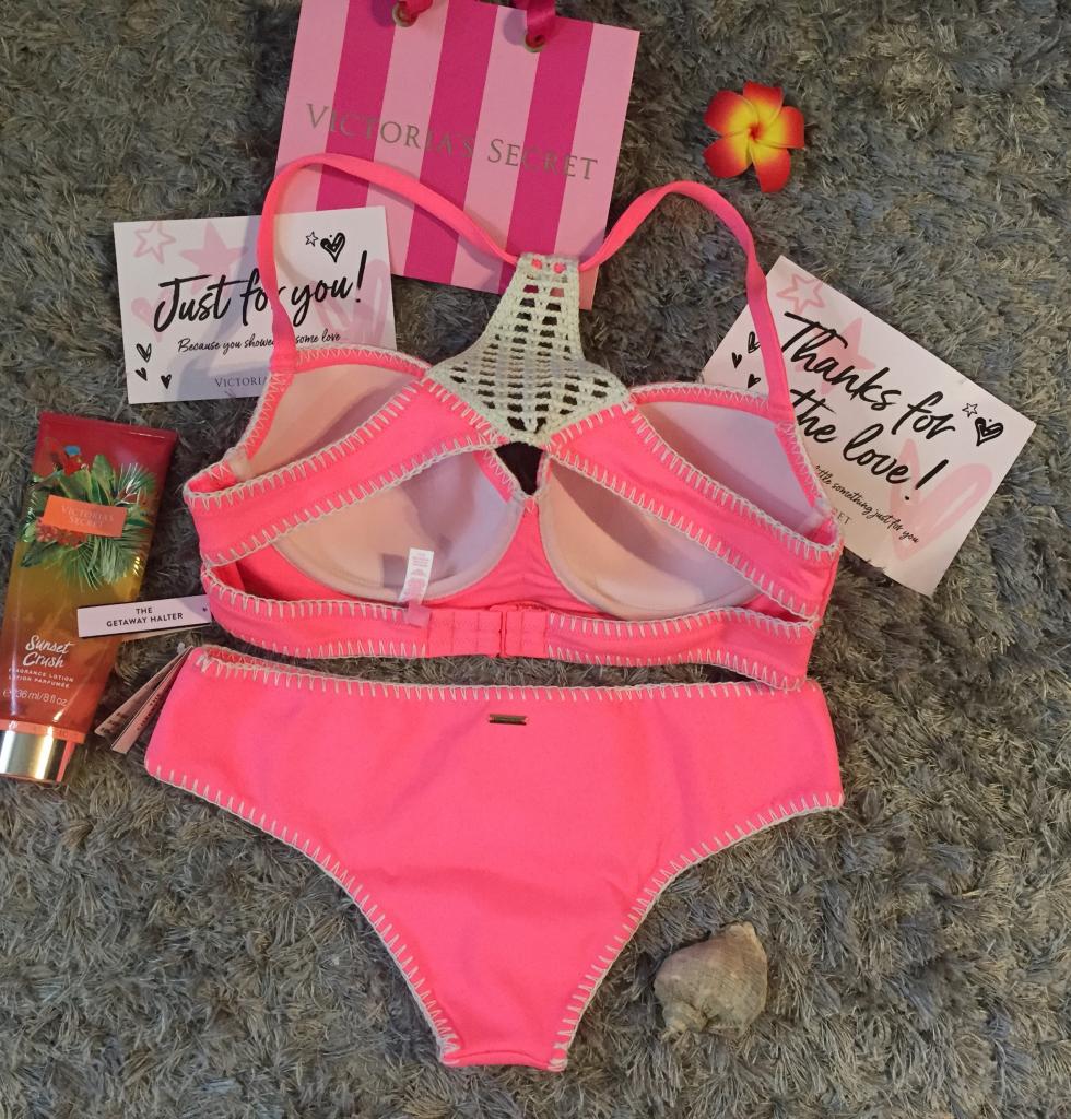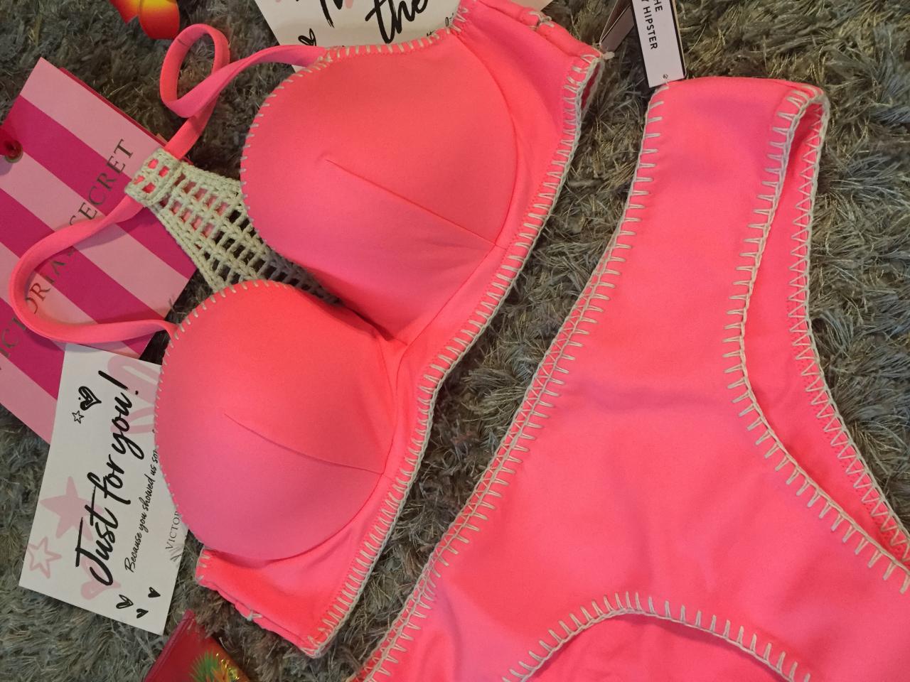 Розовый комплект Victorias secret Angel - бюстгальтер формы деми с мягкими чашками, размер 36Д ( на объемы 75-80 с чашкой С и чуть больше)