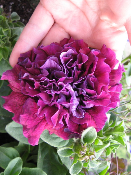 мне махровые петунии напоминают гвоздики или пионы. А у этой еще и более темные жилки по лепесткам.