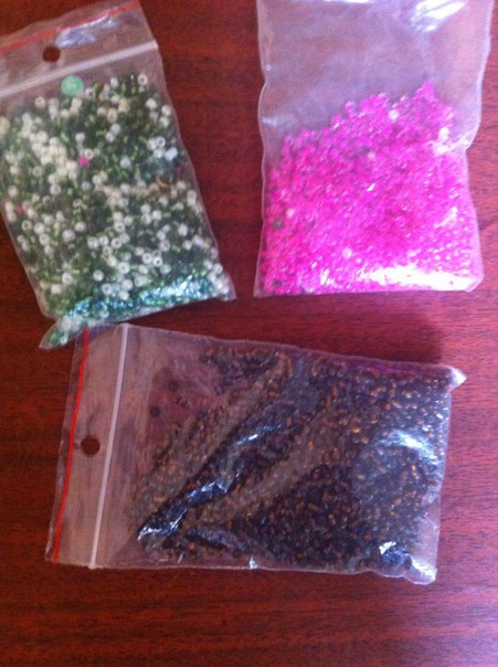8: Бисер 3 пакетика. Зеленый с белым, розовый и коричневый все за 20гр.