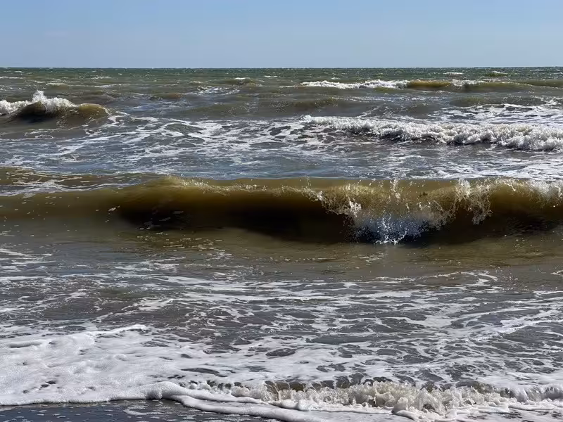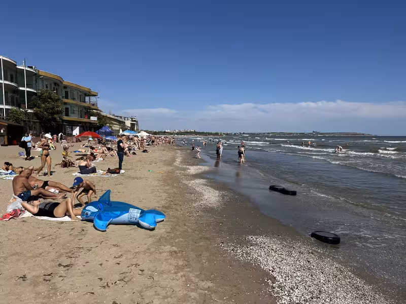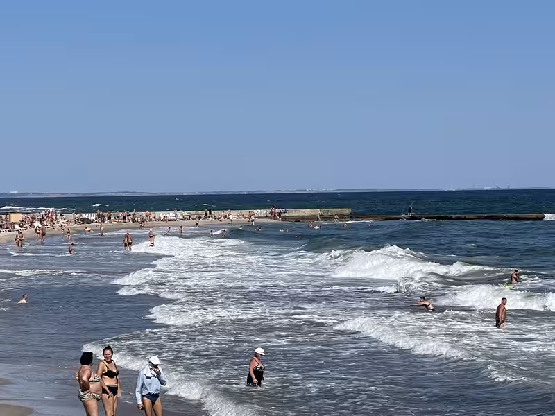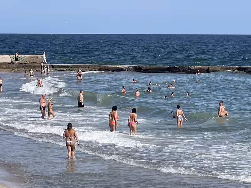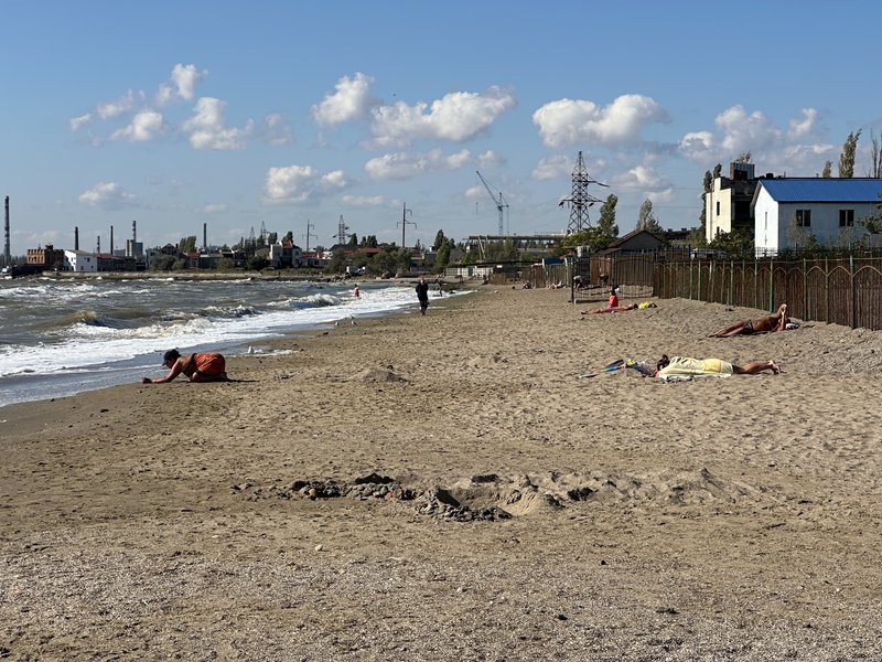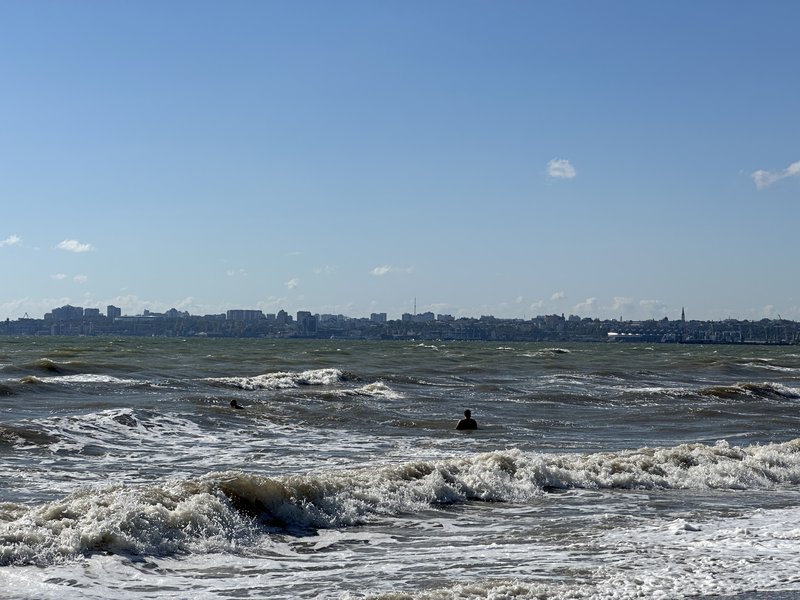 Шторм сильний, біля берега накатило й досить, не полізла далеко у воду, деякі досить легковажно запливали хрін зна куди..