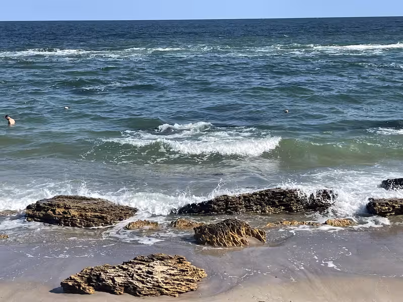 Людей пока мало, но прыгают в волнах, прошла только краем , водичка классная.