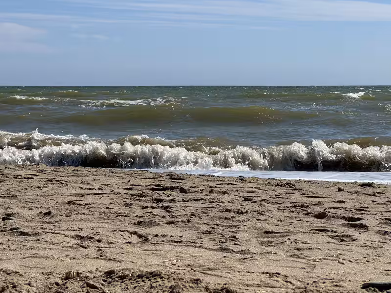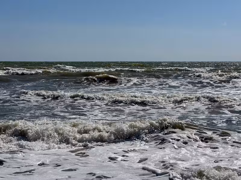 ...сильный ветер и приличные волны. Была мимоходом. Не купалась.