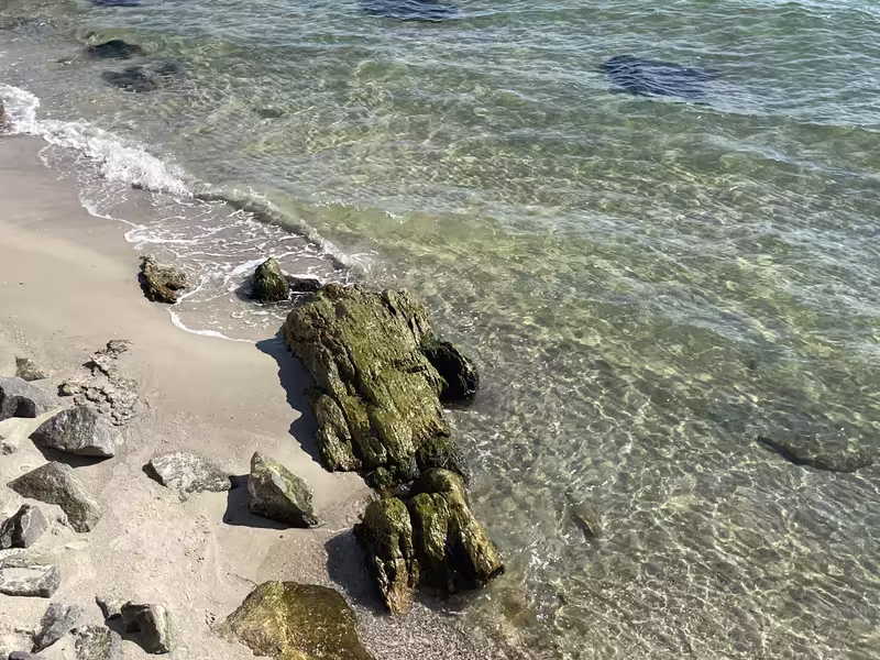 Ветер вдоль берега знатный с порта на аркадию, загорают, но под укрытием пирсов )