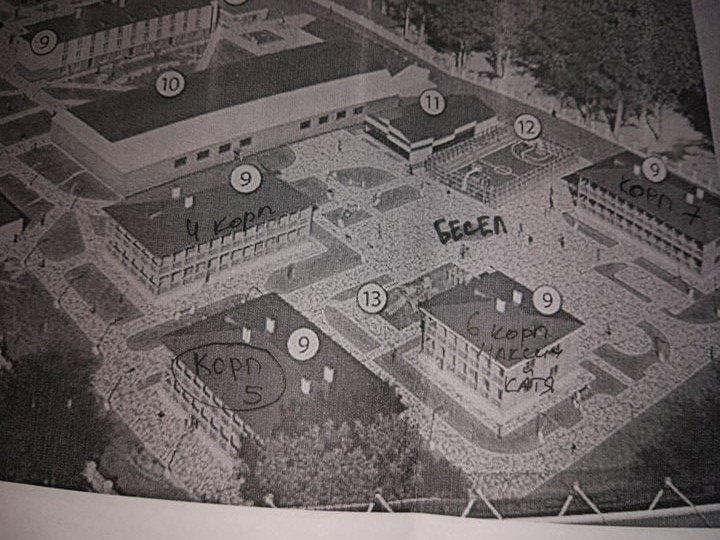 Его видел почти сразу ( теже +/- пару минут) первое место это справа от корпуса наших деток, справа. Он орал и был в истерике, если это можно так назвать. Далее я его видел уже возле корпуса там где стоял штаб мчс. там он уже хватался за сердце и его увели, с ним был один молодой человек из его национальности рядом.