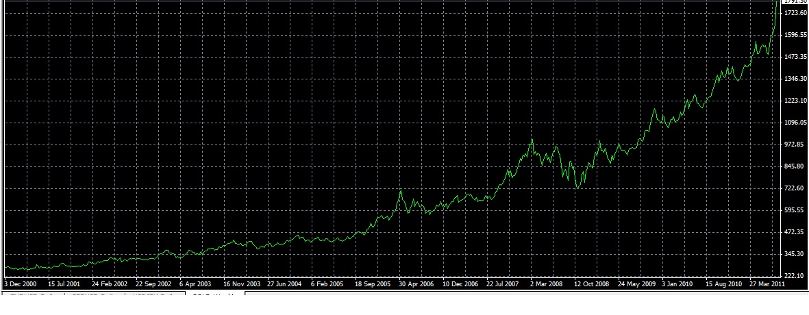 Ниже график стоимости золота. представьте что вы купили его 10 лет назад.