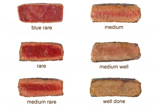 А вообще в приличных стейкхаусах такая картинка есть в меню, и если в разрезе стейк не похож на картинку, то его Вам поменяют на нужной прожарки.Нажмите на изображение для увеличения