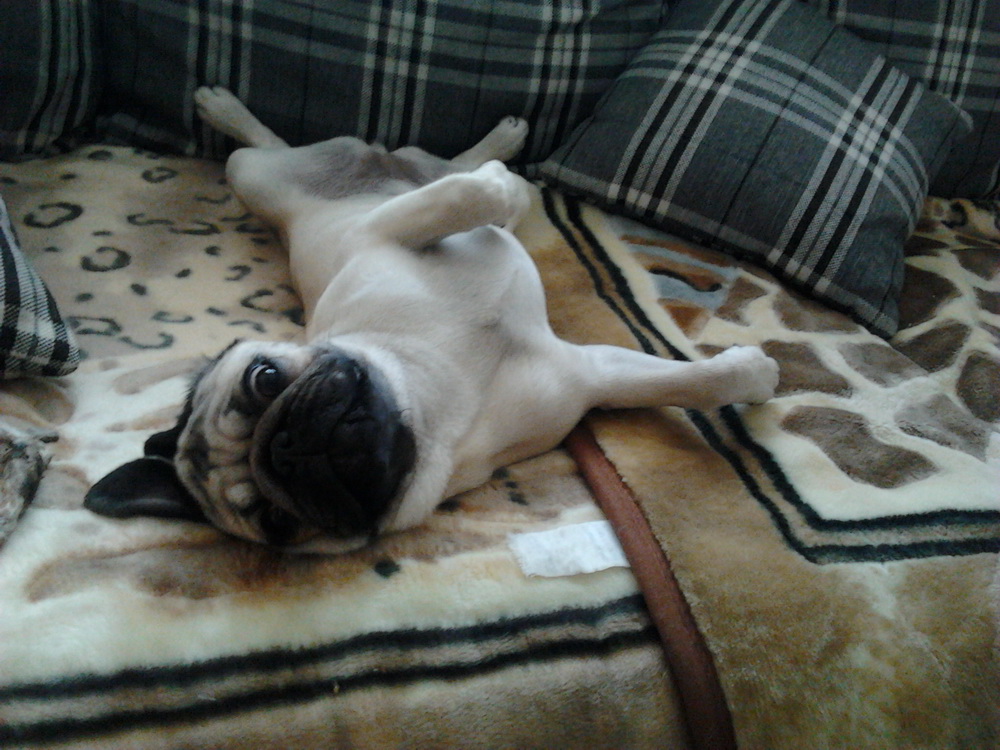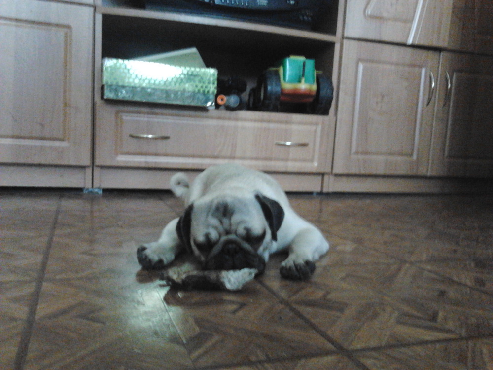 Правда попец у нас не сильно увесистый. Из-за дрессировки толстеть ему нельзя. Он на строгой "диете". Так что у нас скорее "худой" мопс.