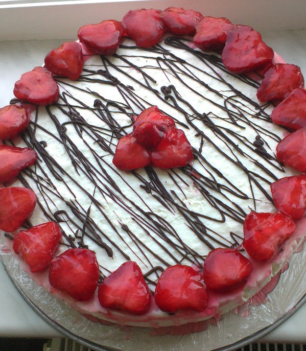 Шоколадный бисквит +сметано-творожное суфле+клубника, вес 2,600Нажмите на изображение для увеличения