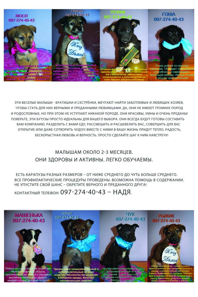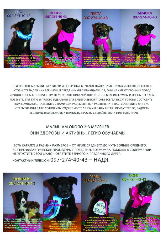 Фотки, тексты,всё очень классно получилось.Желаю малышам скорейшего пристройства.