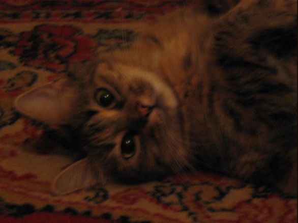 В один прекрасный день моя Муся сидела на балконе и наблюдала за ......(за кем?как вы думаете?).голубями!(естественно)....было открыто боковое окно,через которое она вылезла на карниз и пошла по нему,завернула за угол,а там соскользнула и полетела.К счастью летела она,цепляясь за веревки балконов,а дальше упала на крышу 1ого этажа(пристройка),по ней скатилась в огород.Конечно же у нее был шок.Ее подобрали соседи-очевидцы!позвонили нам и спросили не потеряли ли мы кошечку.....ну мы начинаем искать Мусю,нигде нет.И тогда нам говорят,что она полетела с 9ого этажа и сейчас находится на 1ом этаже))мы думали ,что будем спускаться за трупом.Но все обошлось!Котенок был жив и здоров,только был шокирован.Но когда ее принесли домой,Муся продолжала себя вести как и всегда,как будто ничего не было....Сообщение от Мэри_Поппинс