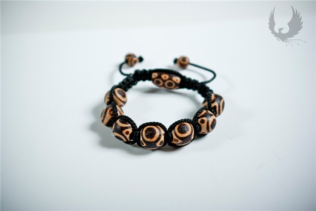 2. Браслет "Валькнут" в другом исполнении. Валькнут тот же, однако остальной рисунок на бусинах другой(не интересно ведь делать то же самое)) Требовался более мужской вариант. В остальном, те же материалы, что и в первом: буковые бусины с ручной росписью (пирография), качественная итальянская кожа.