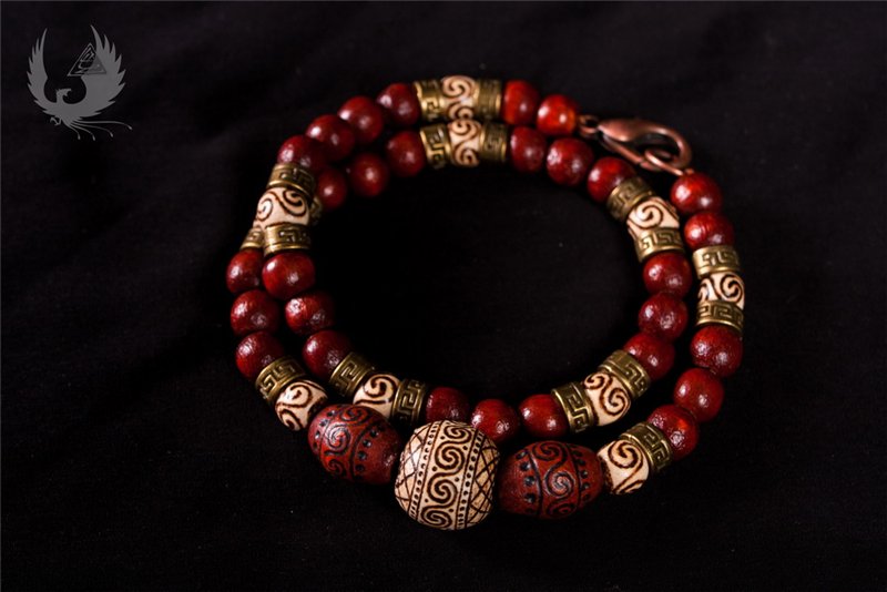 Авторское украшение. Рисунок выполнен на можжевеловой основе размером около 4,5 см при помощи пирографии. Бусины - бук, также расписаны вручную пирографическим способом. Также использована медная фурнитура и нить.