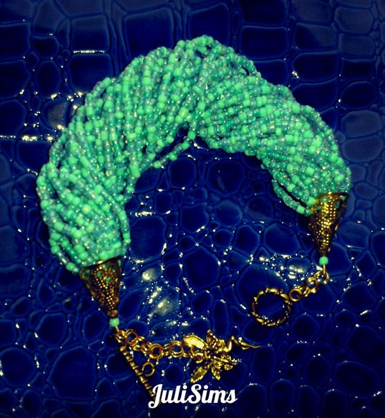 Мятный браслет "Эльф" из бисера с оригинальной золотистой фурнитурой, с застежкой "тогл". Очень красиво переливается на солнышке ;-)