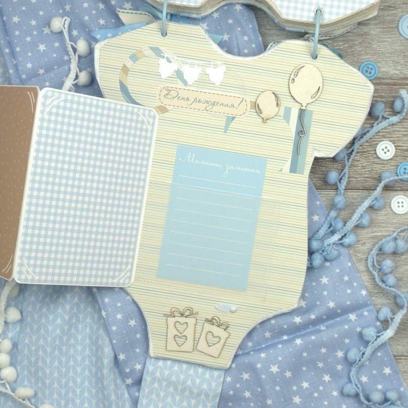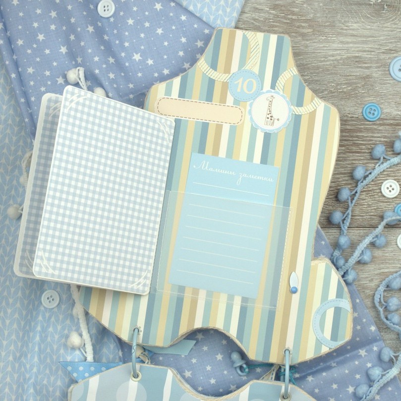 Альбомчик бодик для мальчика, 7 разворотов (14 страниц), множество кармашков и места для записей о малыше. Цена подобного альбома 900 грн. Альбом в коробке.