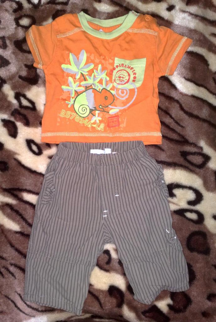 коричневые штаники 0-6 месяцев с подклаткой, футболочка 0-4 месяцаНажмите на изображение для увеличения