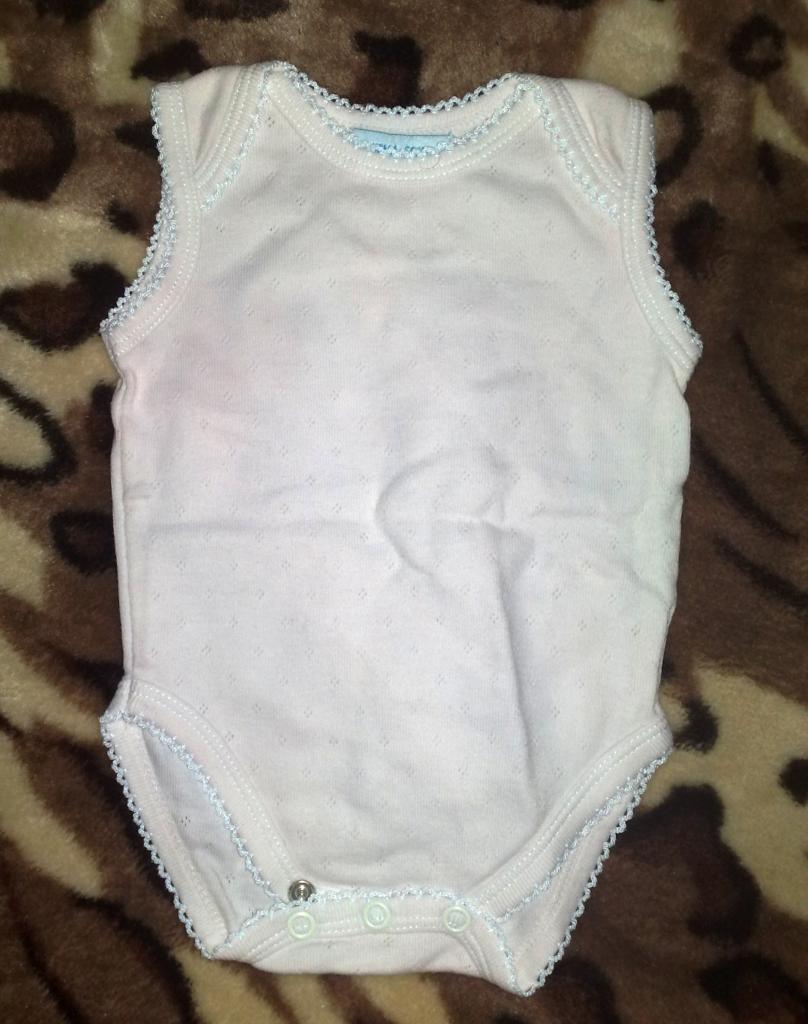 бодик нежно розовый,близко к белому, очень классного качества 0-3 месяца.как новыйНажмите на изображение для увеличения